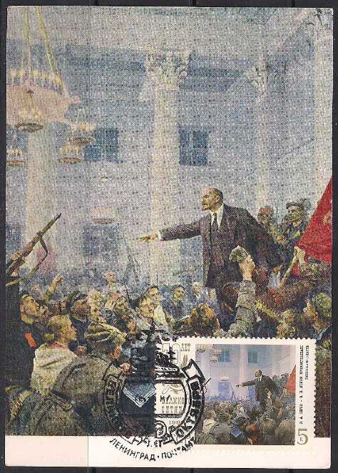 Картмаксимум. 70 лет Великого Октября, В. Серов "В.И. Ленин провозглашает Советскую власть", 05.11.1987 год, Ленинград почтамт