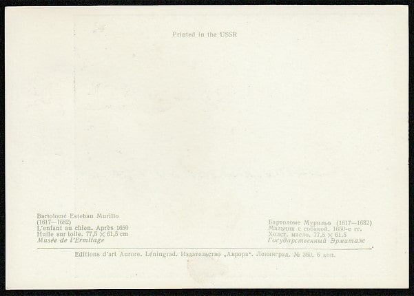 Картмаксимум. Б.Э. Мурильо, "Мальчик с собакой", 17.09.1981 год, Ленинград, Д-65.