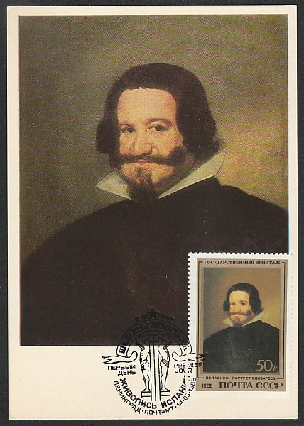 Картмаксимум. Д.С. Веласкес. "Портрет графа Оливареса". Эрмитаж. Живопись Испании, 14.03.1985 год, Ленинград, почтамт