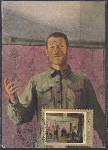 Картмаксимум. Филвыставка "50 лет СССР". Е. Чепцов "Заседание сельячейки", 21.01-05.02.1973 год, Москва почтамт