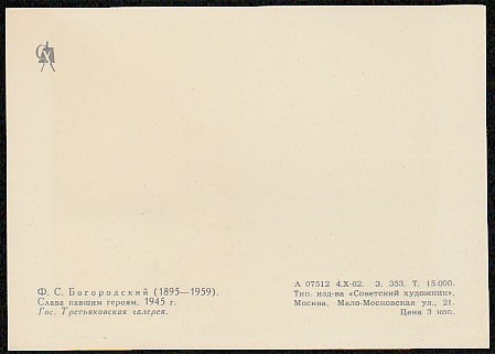 Картмаксимум. Картина Ф. Богородского "Слава павшим героям", 09.05.1966 год, Ленинград, почтамт.