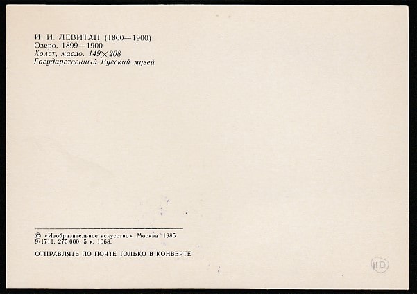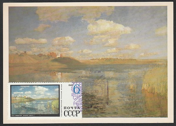 Картмаксимум. Картина И.И. Левитана "Озеро". Государственный Русский музей, 10.12.1990 год, Ленинград