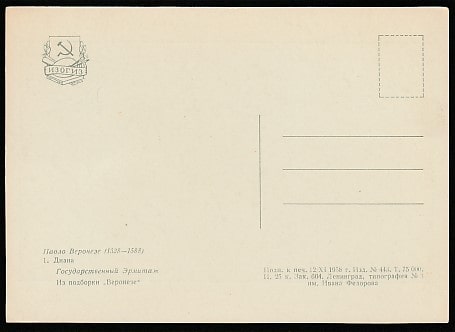 Картмаксимум. Картина Паоло Веронезе "Диана", 22.06.1987 год, Ленинград
