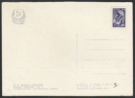 Картмаксимум. Картина В.И. Сурикова "Боярыня Морозова", 29.12.1967 год, Москва.