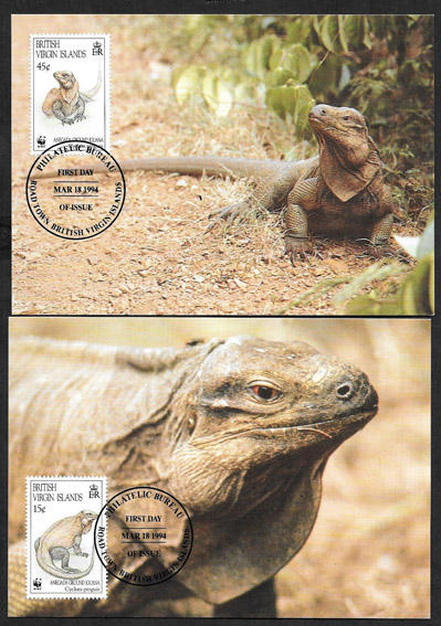 Картмаксимум. Комплект 4 шт. Игуана со СГ - Остров Вирджиния WWF 18.03.94 г.