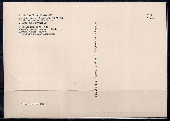 Картмаксимум. Л. Ленэн "Семейство молочницы", 29.06.1974 год, Ленинград почтамт