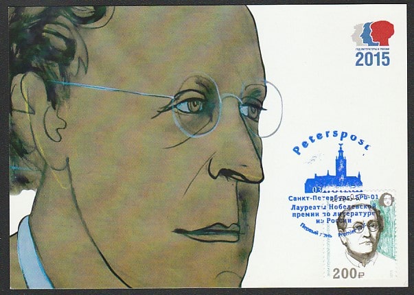 Картмаксимум. Нобелевский лауреат по литературе Иосиф Бродский, 03.12.2015 год, СПб (непочтовая марка)