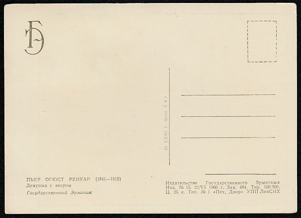 Картмаксимум. Огюст Ренуар, "Девушка с веером", 17.09.1981 год, Ленинград, Д-65.