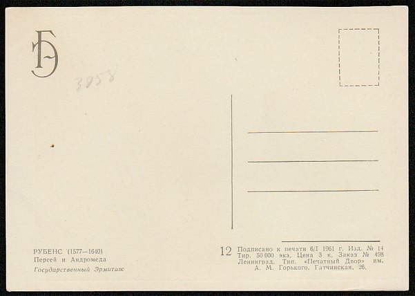 Картмаксимум. Питер Пауль Рубенс, "Персей и Андромеда", 21.10.1981 год, Ленинград, Д-65.