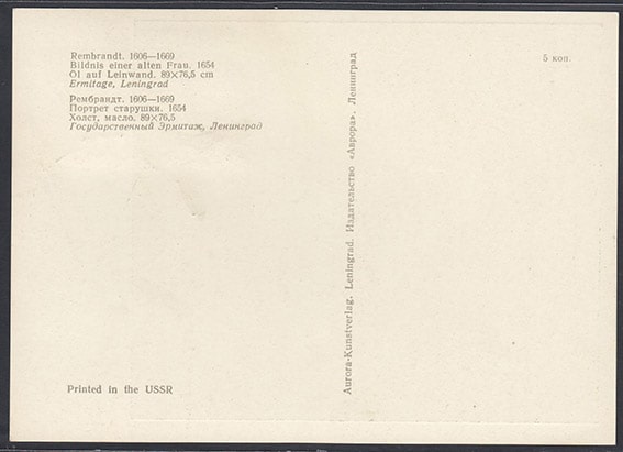 Картмаксимум Шедевры Эрмитажа. Живопись Голландии. Рембрандт, Ленинград 25.03.1983 год