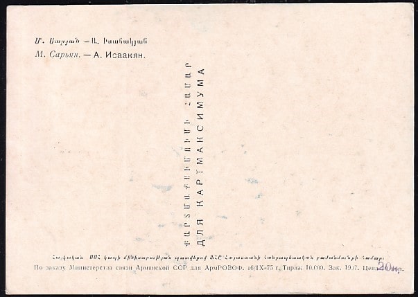 Картмаксимум со СГ "100 лет со дня рождения Аветика Исаакяна", 31.10.1975 год, Ереван