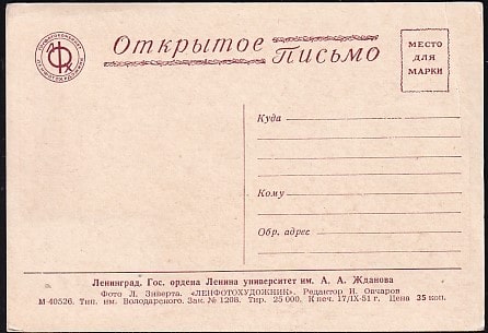 Картмаксимум со СГ "150 лет Ленинградскому Университету", 10-21.02.1969 год, Ленинград