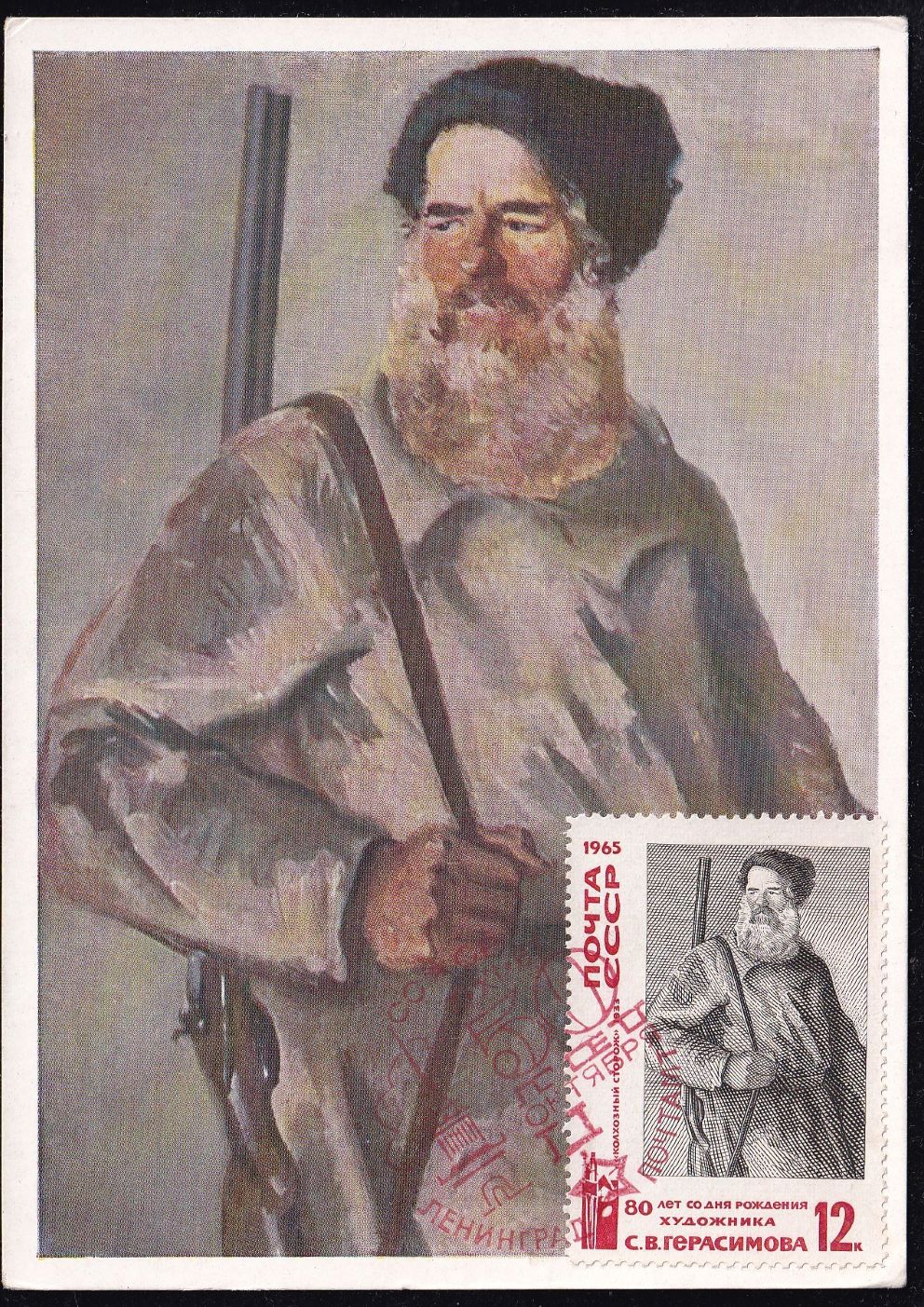 Картмаксимум со спецгашением - 50 лет Октября 7.11.1967 год, Ленинград ("Колхозный сторож")
