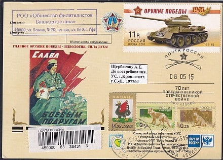 Картмаксимум со спецгашением "70 лет Победы в ВОВ" (боевым подругам), 8.05.2015 год, Уфа, прошел почту (ВВ)