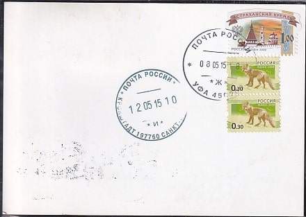 Картмаксимум со спецгашением "70 лет Победы в ВОВ" (За честь), 8.05.2015 год, Уфа, прошел почту (ВВ)