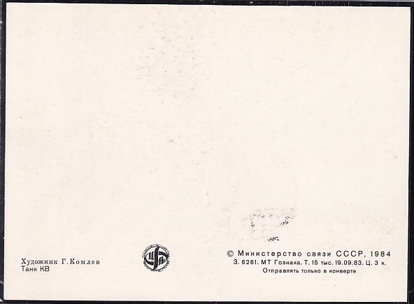 Картмаксимум со спецгашением "Оружие Победы" Танк КВ, 25.01.1984 год, Москва