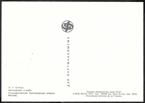 Картмаксимум со спецгашением - Советская живопись 7,12,1972 г. Грабарь. ПД