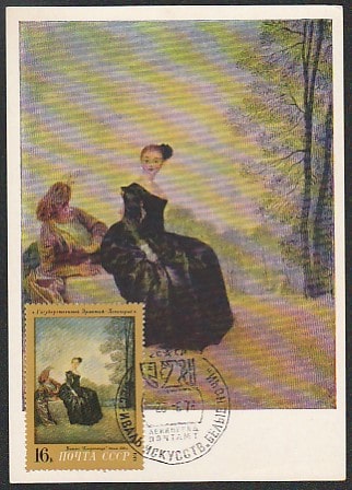 Картмаксимум со спецгашением. Живопись, Ватто. Фестиваль искусств "Белые ночи", 26.06.1974 год, Ленинград.