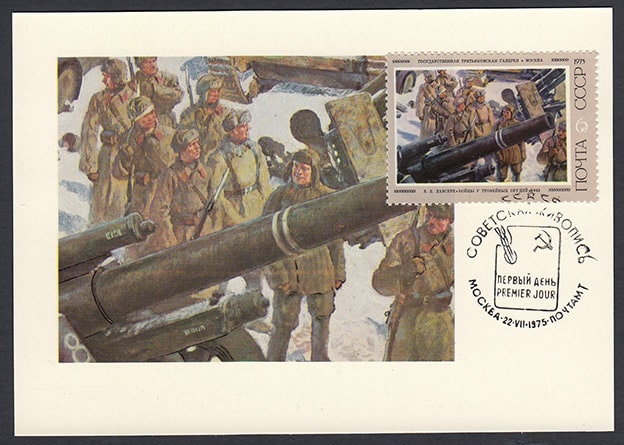 Картмаксимум. Советская живопись. Худ. Лансере. Бойцы у трофейных орудий, Москва 22.07.1975 г.