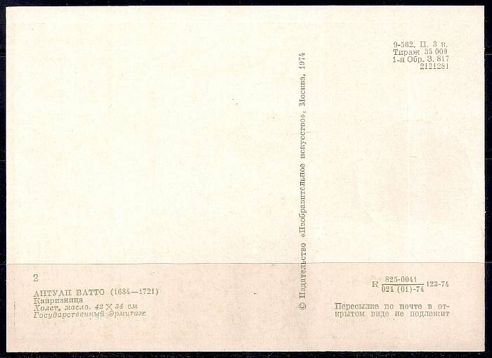 Картмаксимум. Ватто "Капризница" (марка сверху), 29.06.1974 год, Ленинград почтамт