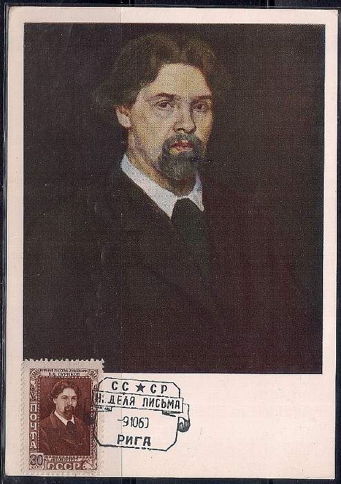 Картмаксимум. В.И. Суриков. Автопортрет, гашение 09.10.1960 год, Рига