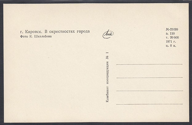 Карточка. г. Кировск. В окрестностях города. 1971 год