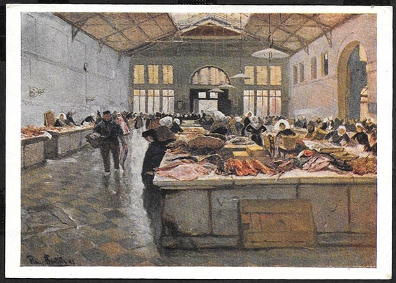 Карточка. Худ. Ганс Бартельс. Рыбный рынок, 1961 год. ИЗОГИЗ