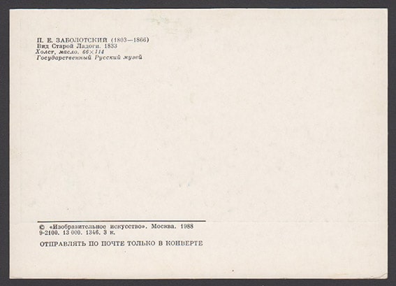 Карточка П.Е. Заболотский. Вид Старой Ладоги, 1988 год