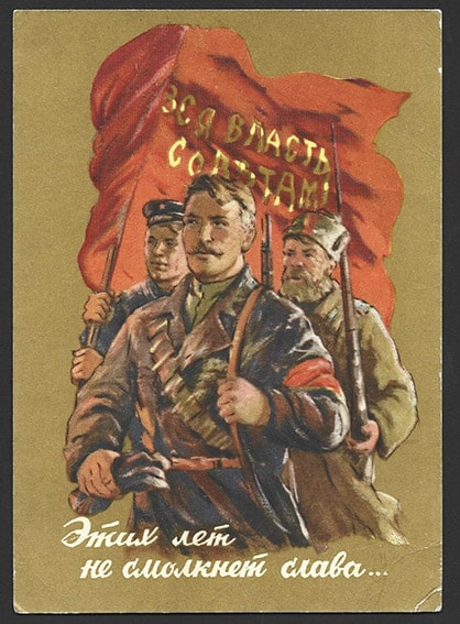 Карточка подписана 1956 год. Изогиз. Худ. Акимушкин. Этих лет не смолкнет слава...
