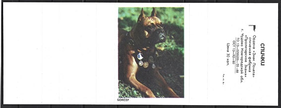 Фауна › Картонная коробка кабинетного формата для четырёх коробков со спичками. Пролетарское Знамя. Боксер