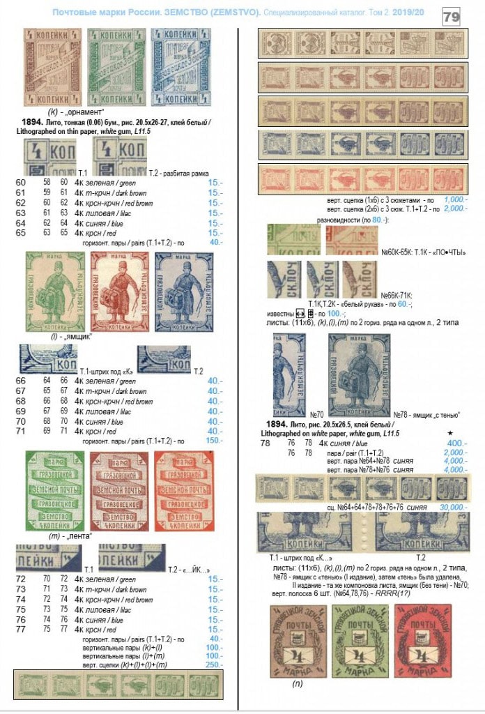 Каталог. В.Ю. Соловьев. Почтовые марки России и СССР. Земство, 2019/20 гг. Том 2