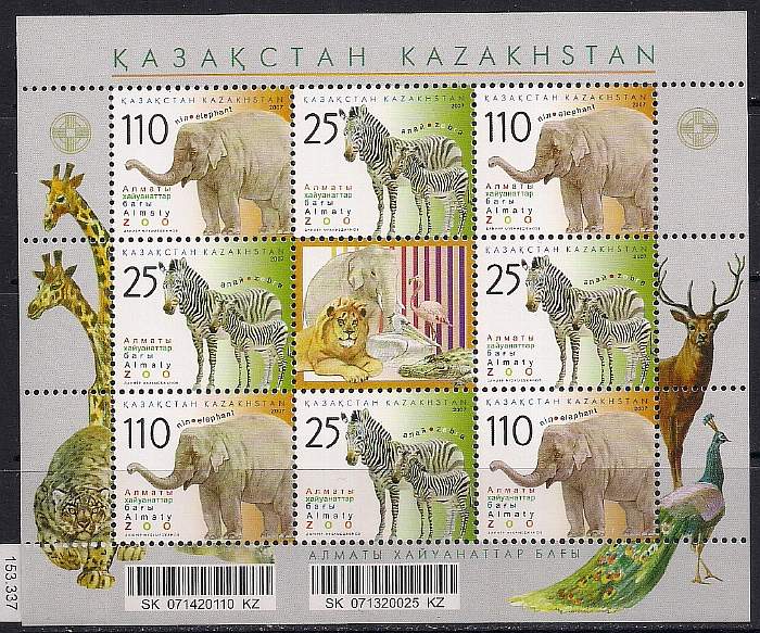 Казахстан 2007 год. 70 лет Алма-Атинскому зоопарку. 1 малый лист (153.337)
