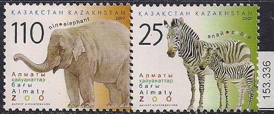 Казахстан 2007 год. 70 лет Алма-Атинскому зоопарку. Зебра, слон. 2 марки (153.336)
