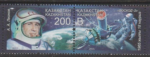 Казахстан 2015 год. 50 лет первому выходу человека в космос, пара марок (153.625)
