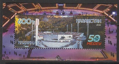 Казахстан 2022 год. 50 лет высокогорному комплексу "Медеу", блок (н