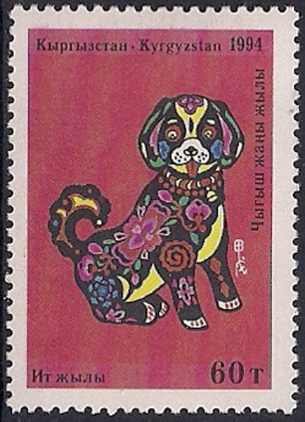 Киргизия 1994 год. Год Собаки. 1 марка (н)