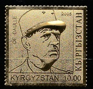 Киргизия 2005 год. Первый президент Франции Шарль де Голль, 1 марка. ФОЛЬГА ЗОЛОТО