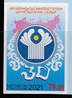 Киргизия 2021 год. 30 лет СНГ, 1 б/зубц. марка (н