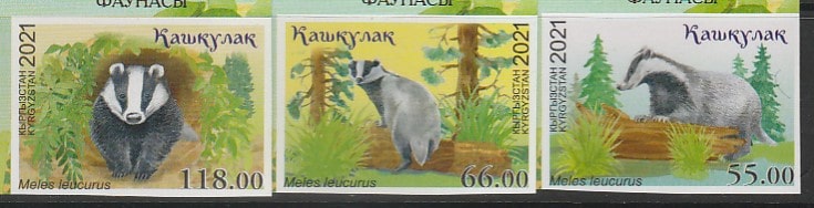 Киргизия 2021 год. Фауна: азиатский барсук, 3 б/зубц. марки (н