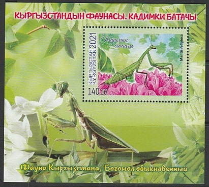 Киргизия 2021 год. Флора и фауна. Богомол обыкновенный, блок (н
