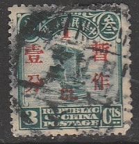 Китай 1930 год. Стандарт. Джонка, ндп, ном. 1 С/3 С, 1 марка (гашёная)