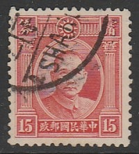 Китай 1934 год. Стандарт. Сунь Ятсен, ном. 15 С, 1 марка из серии (гашёная)