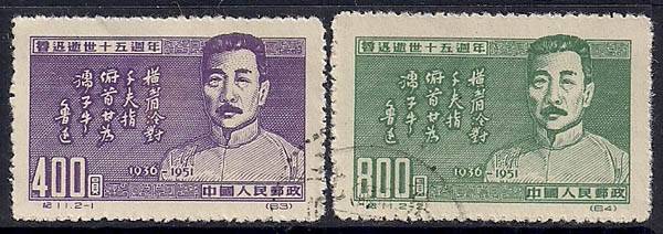 Китай 1951 год. 15 лет смерти писателя Лу Сина. 2 гашеные марки