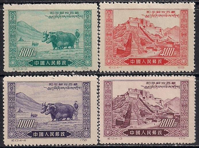 Китай 1952 год. Тибетский монастырь. Буйволы. 4 марки