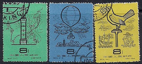 Китай 1958 год. Метеорология в древнем и современном Китае. 3 гашеные марки
