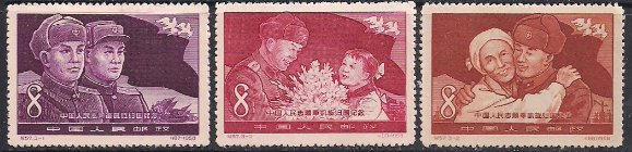 Китай 1958 год. Возвращение победоносной китайской армии из Кореи. 3 марки