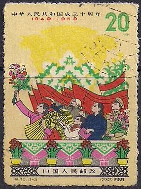 Китай 1959 год. 10 лет образования КНР. 1 гашеная марка из серии