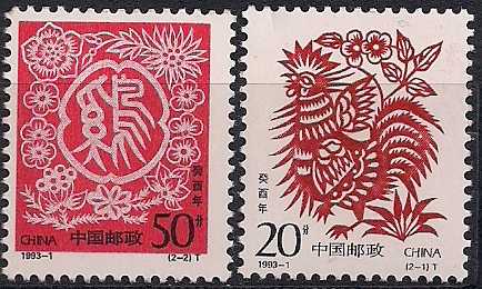Китай 1993 год. Год Петуха. 2 марки
