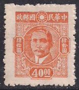 Китай (КНР) 1945 год. Сунь Ятсен (ном. 40). 1 марка из серии (без клея) ШВ