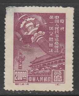 Китай (КНР) 1949 год. Азиатский конгресс профсоюзов (ном. 200 $), 1 марка из серии (наклейка)